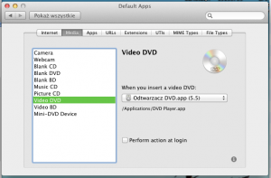 Możemy w nim ustawiać domyślne programy dla rzeczy ogólnych, używanym w całym systemie, czyli co jest domyślnym klientem poczty a co internetu. Możemy także wybrać co ma się dziać po podłączeniu np. aparatu bądź włożeniu płyty z filmem DVD.